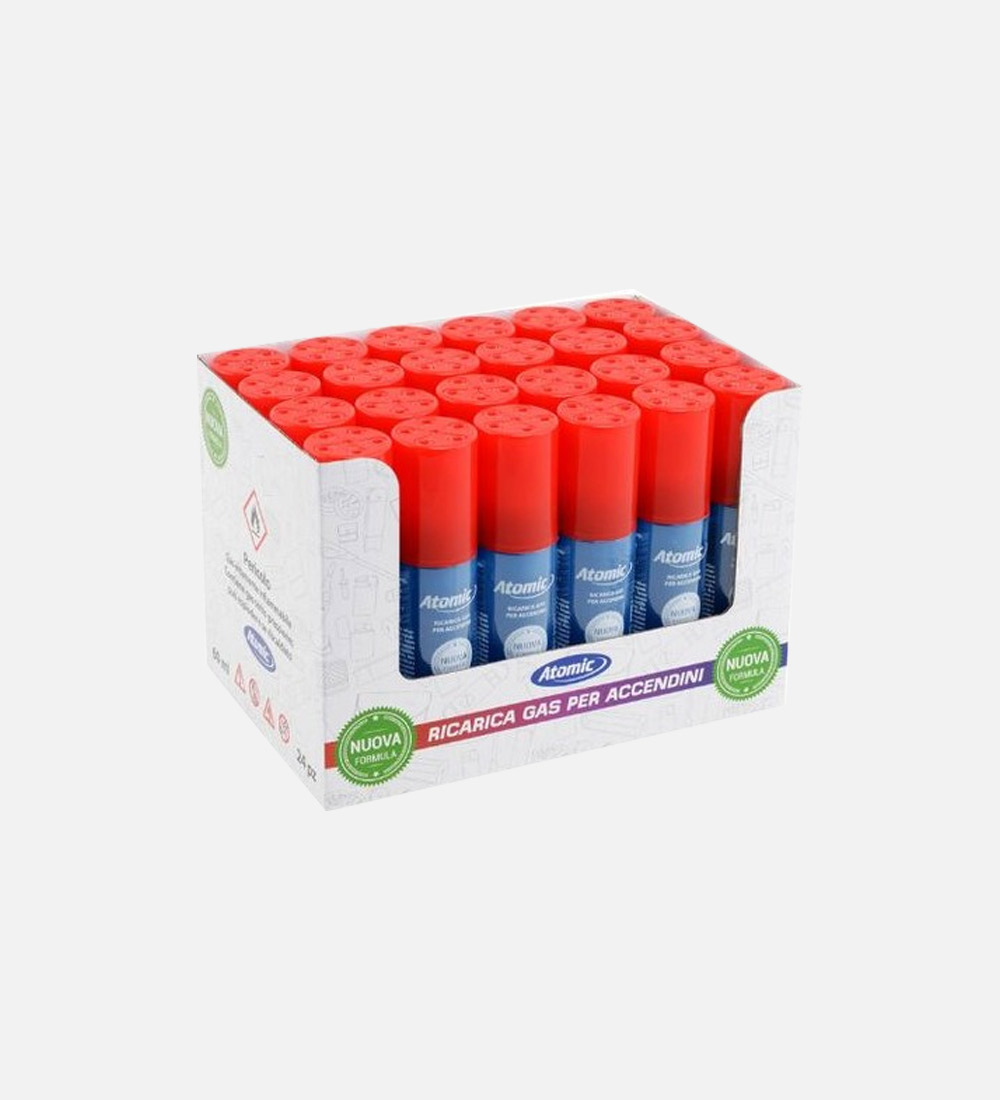 GAS Atomic 60ML, il GAS Atomic da 60ML è un prodotto fondamentale per ricaricare il tuo accendino più e più volte. La confezione contiene 24 pezzi.