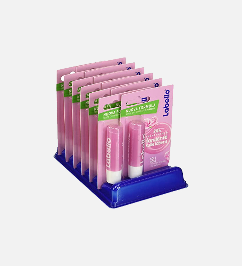 Burrocacao Labello prug. rose’, il burrocacao Labello aiuta a mantenere idratate le labbra quando sono secche e le rende morbide e luminose. La confezione contiene 12 pezzi.